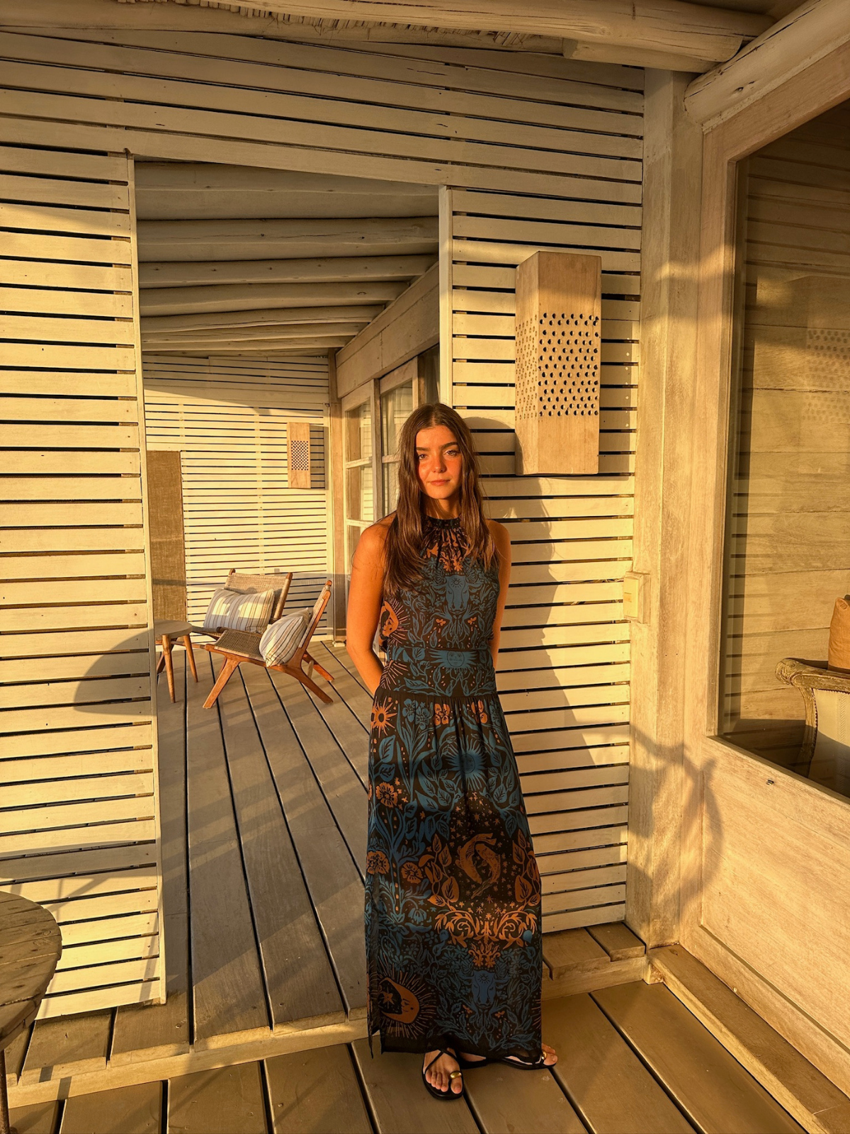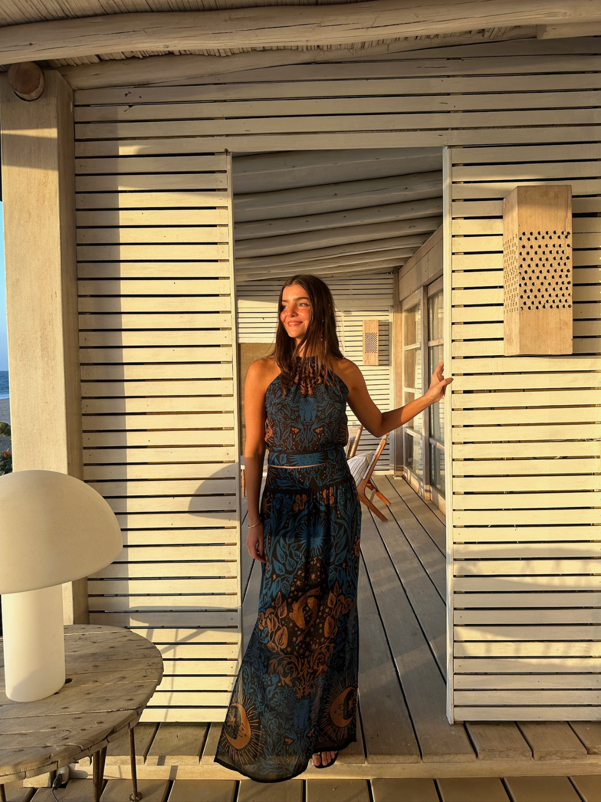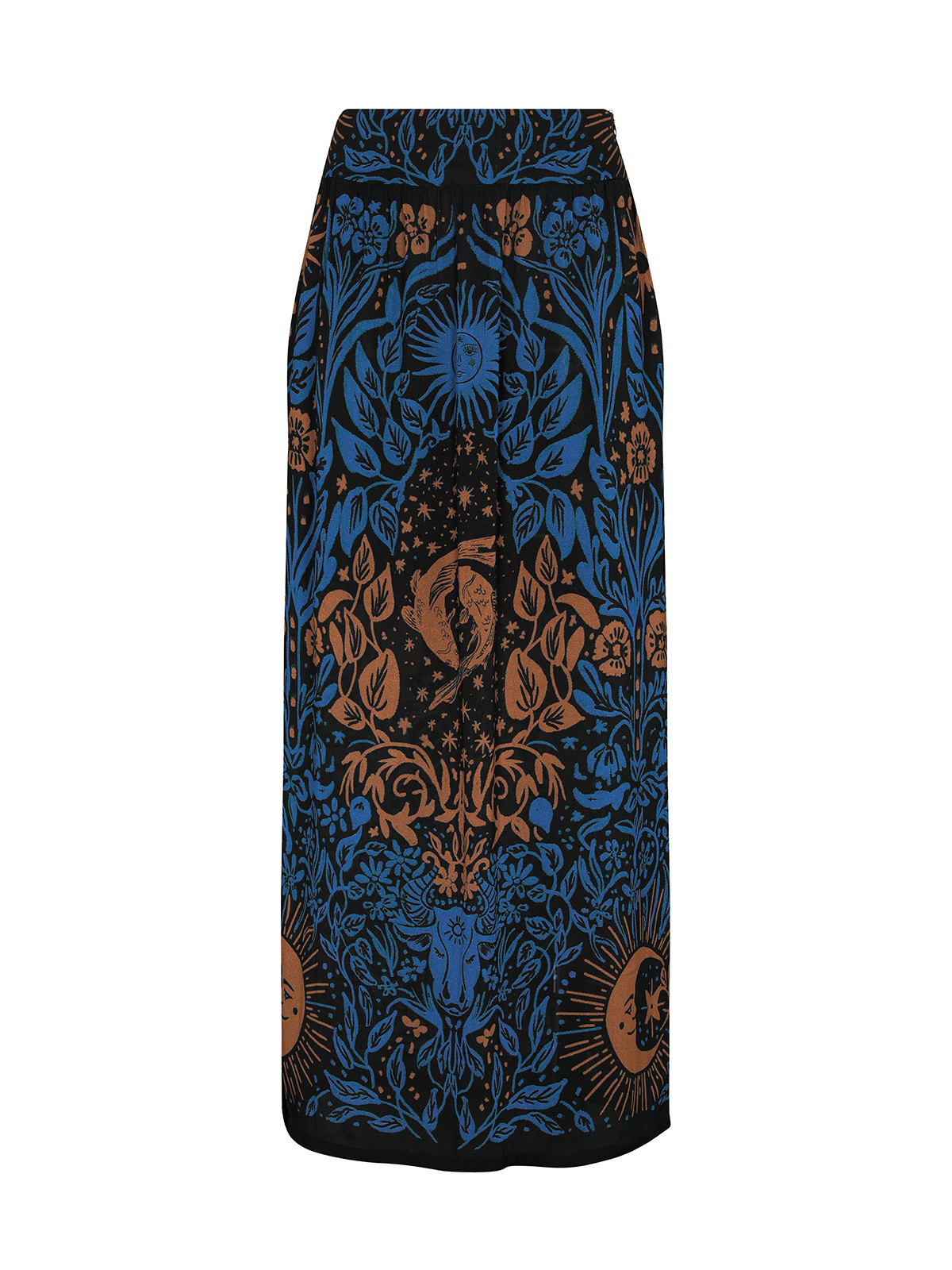 The Astra Skirt is a low-waist maxi skirt with a dropped-waist cut that sits at the hip and flows into a long, easy silhouette. It features slits on both sides for movement and a subtle, elongating effect.