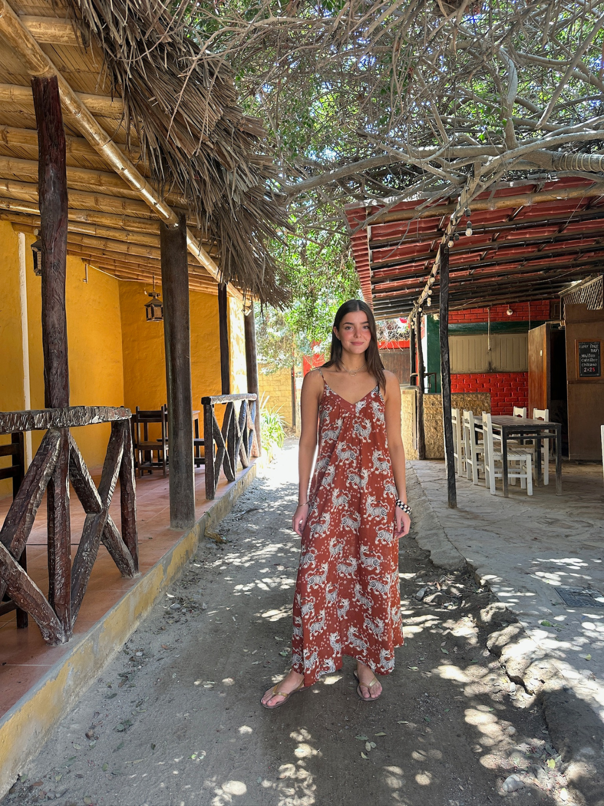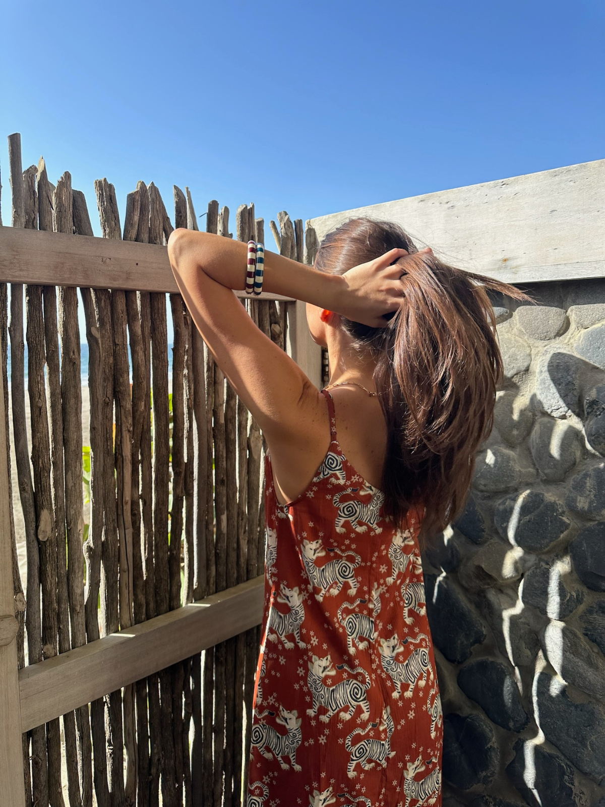 Tulip Flare Dress—a fresh twist on our classic Tulip Dress! Crafted from the same breathable 100% cotton, it features thin, adjustable straps for the perfect fit. Slightly translucent, it’s the perfect lightweight beach cover-up. This new version stands out with side cutouts and a sleek straight hem.