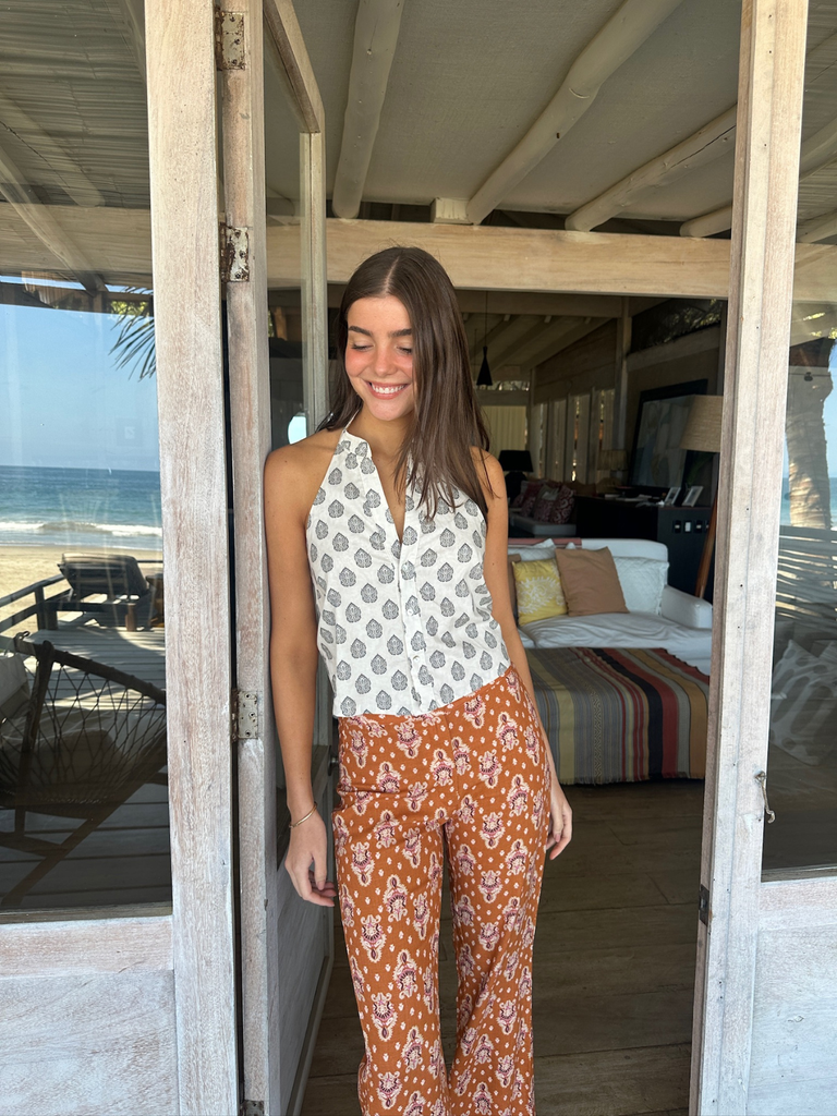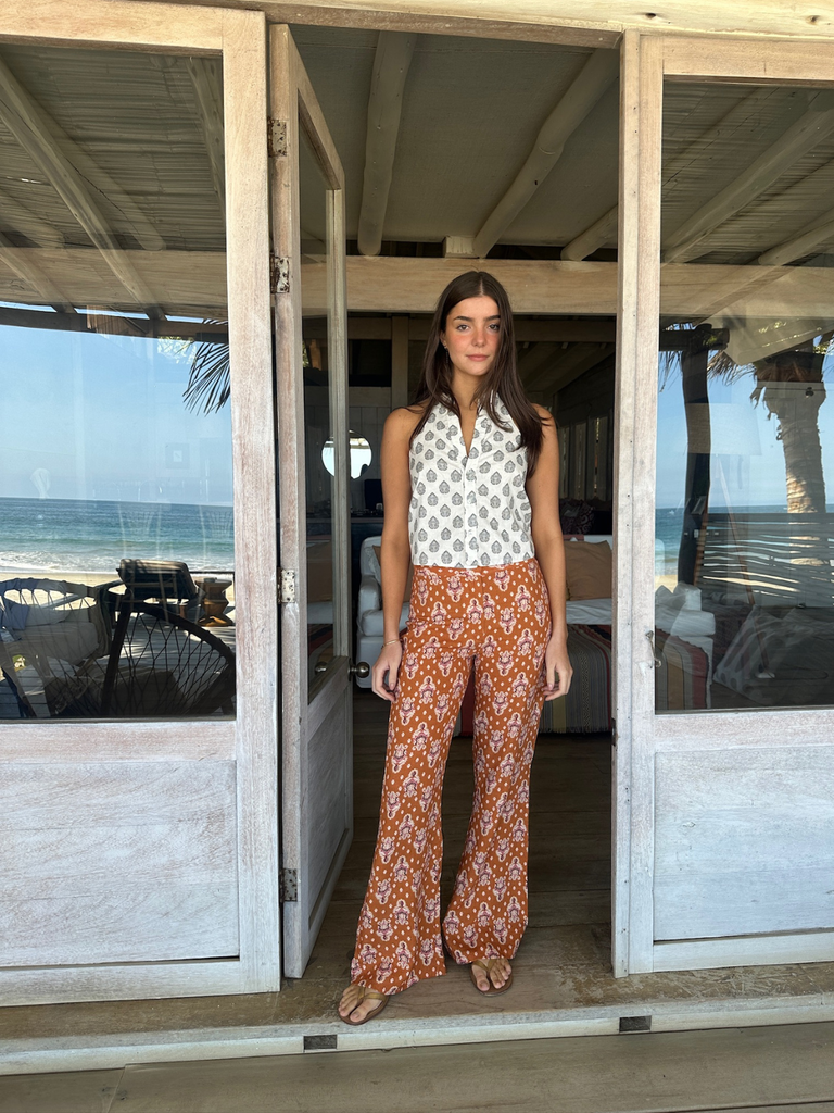 The Davis Pants offer a flattering, slim fit through the leg, complemented by a soft elastic waistband that enhances both comfort and shape. Crafted from a breathable blend of 84% Ecovero Viscose and 16% Linen, they naturally relax with wear. An invisible front zipper and clasp provide a clean finish, while the flared hem adds a subtle touch of elegance. For care, hand wash only and avoid tumble drying.