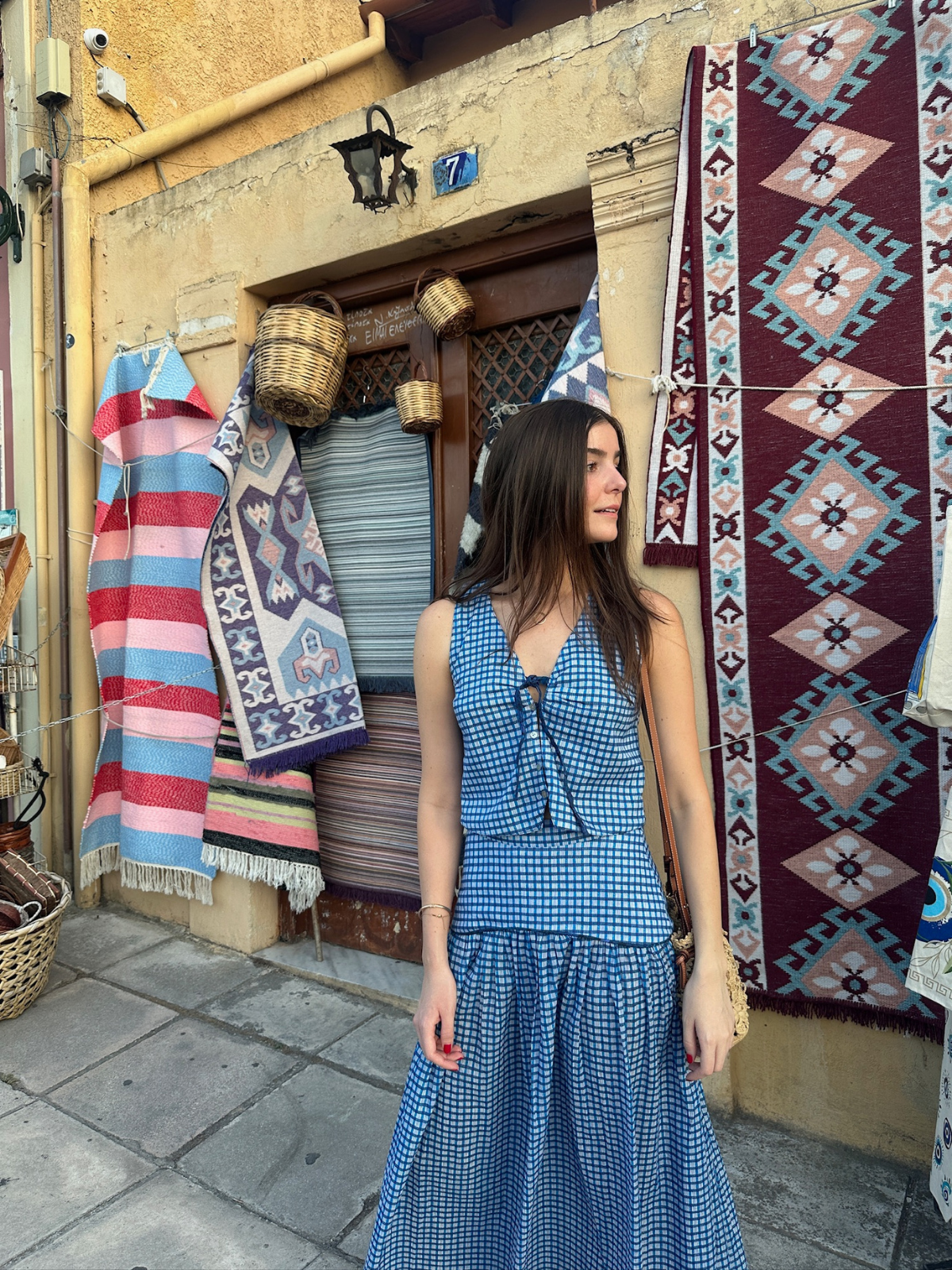 The Pelagos Martha Skirt is a drop-waist midi crafted from 100% cotton. Lightweight and breathable, it’s ideal for warmer seasons. Designed with a seamless back zipper that ensures a smooth, flattering silhouette. Pair it with the Reversible Galatea/Pelagos Vest for a coordinated, dress-like look.