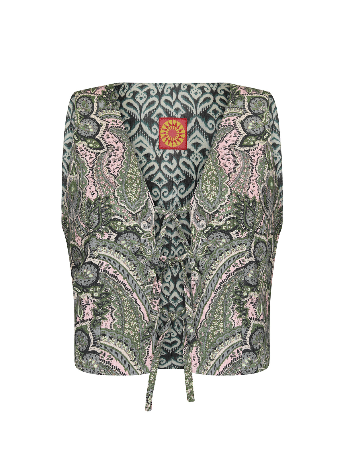 Este chaleco reversible cuenta con tres lazos al frente y una entretela que le da forma y estructura. Combínalo con las faldas a juego Amazonia o Duna para completar el conjunto. Confeccionado en una mezcla de lino y viscosa. Lavado delicado.