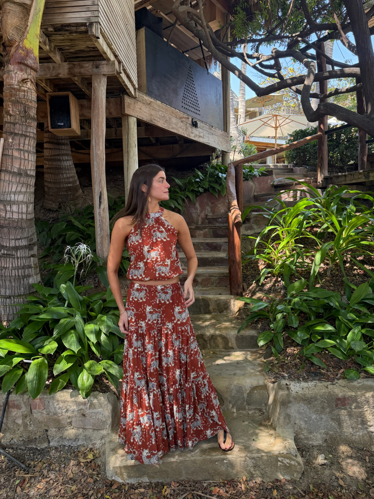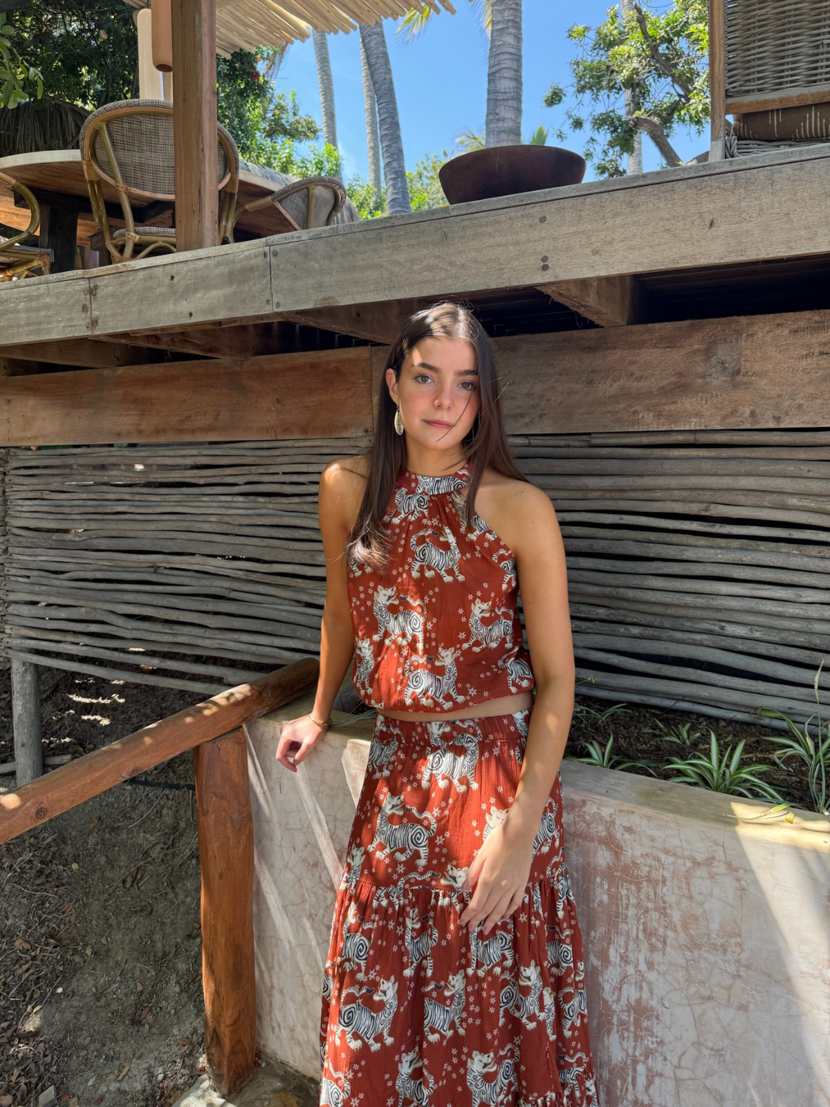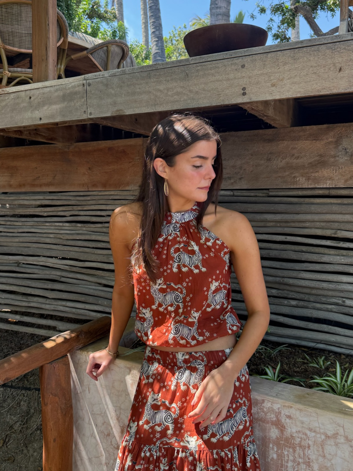 Llévalo solo para un look veraniego y relajado, o combínalo con la Falda Andrea del mismo estampado para lograr un efecto de vestido.