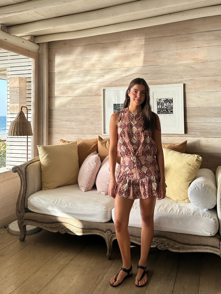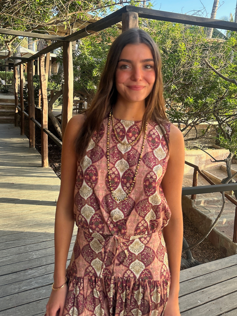 El Top Chiara es un esencial versátil para el verano, hecho de popelina de algodón 100%. Con un diseño sencillo y un lazo ajustable en el dobladillo, puedes llevarlo a la cintura, en las caderas o suelto para una comodidad sin esfuerzo. Combínalo con la Falda Martha para un look perfecto para los días cálidos.