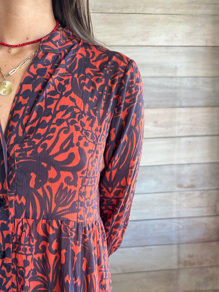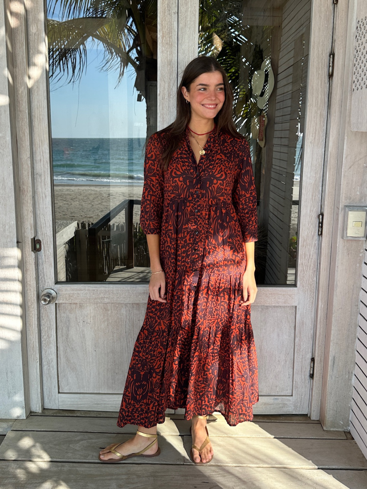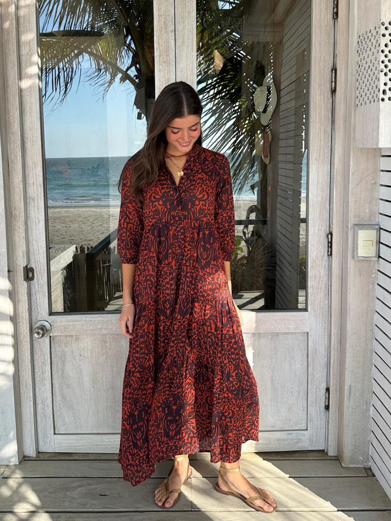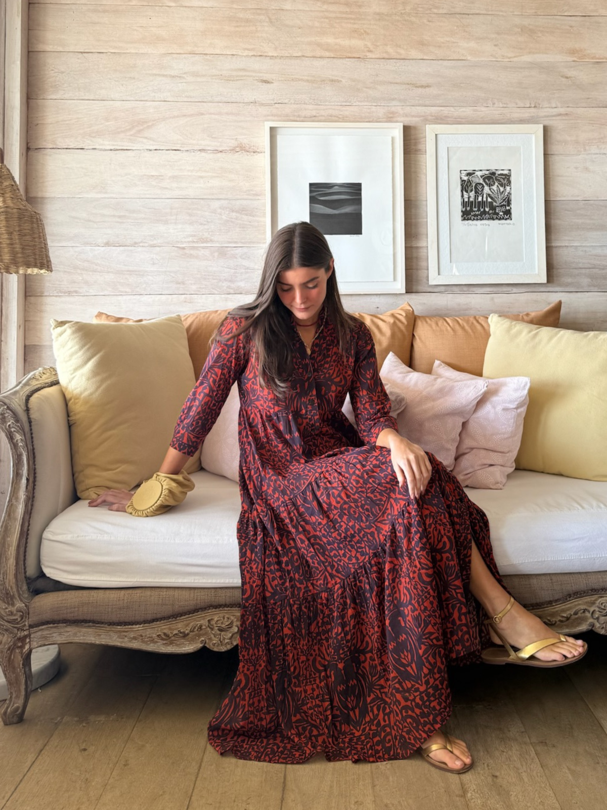 El Vestido Julieta está confeccionado en algodón 100%, con un tejido suave y ligeramente translúcido, ideal para climas cálidos. Tiene mangas largas 3/4 y cuenta con botones que van desde el escote en V hasta justo por encima de las rodillas, lo que lo hace adaptable a diferentes estilos. Úsalo completamente abierto como un cover-up fresco o abotonado para un look menos playero.