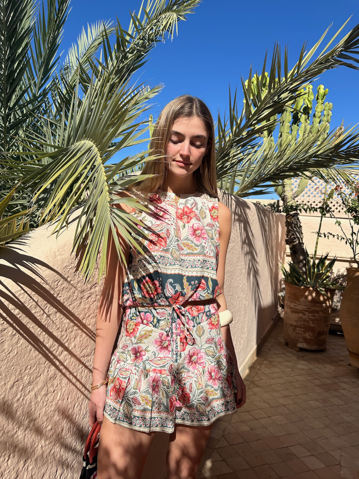 Hecha de 100% algodón popelina, esta falda tiene una cintura elástica en la parte trasera y fija en la parte delantera. Incluye un cierre lateral oculto y shorts integrados con el mismo estampado para mayor comodidad. Disponible en cuatro estampados.