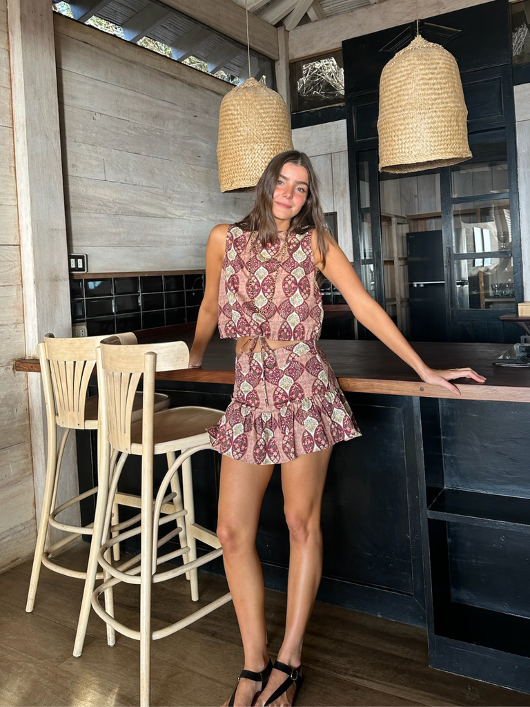 Confeccionada en popelina de algodón 100%, esta mini falda cuenta con pretina elástica en la parte posterior y delantera lisa para un calce favorecedor. Incluye cierre lateral invisible, forro interior completo y shorts integrados para mayor comodidad y cobertura. Combínala con el Top Chiara Dione para un look coordinado.